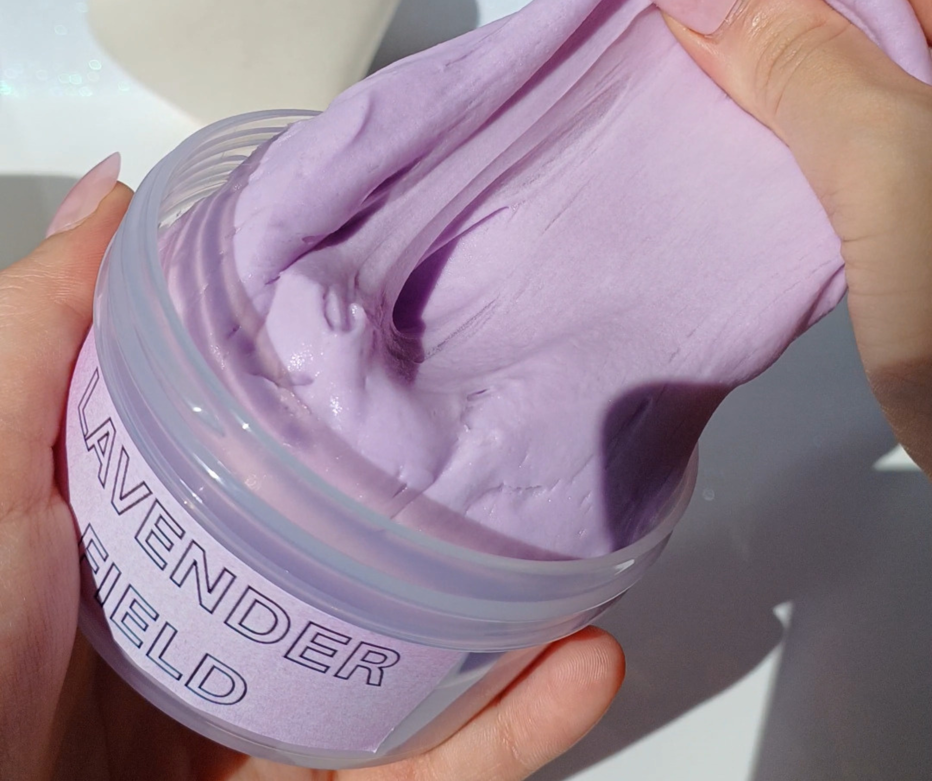 Texture: This slime contains a lavender butter slime. and can become super puffy and inflatable once stretched!
